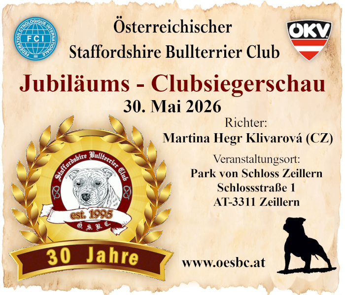 • Herzlich Willkommen auf der Homepage des “Österreichischen Staffordshire Bullterrier Club” (ÖSBC)!