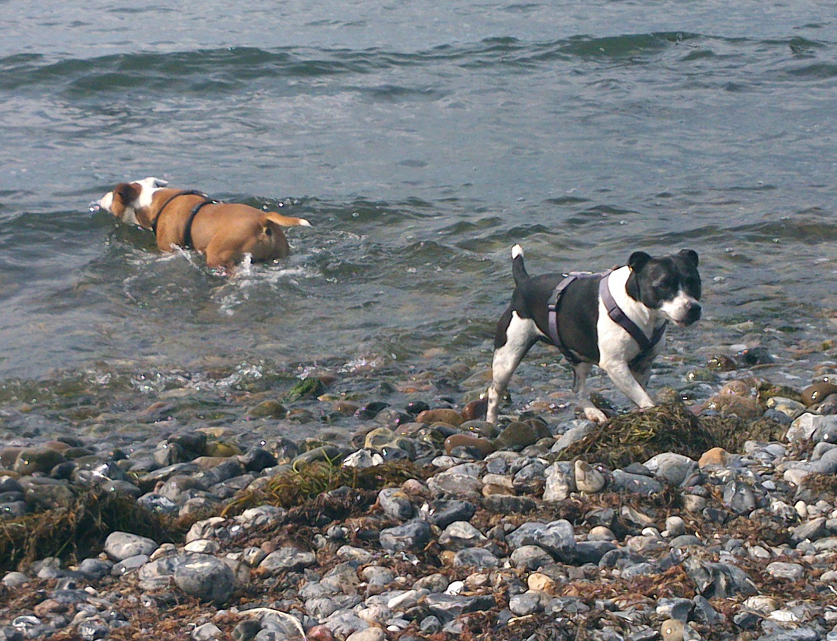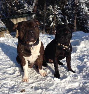 Der Staffie ist kein „Einmannhund“, der sein Herrchen und dessen Besitz gegen alles und jeden verteidigt, und somit als Wachhund ungeeignet. Als nervenstarker, furchtloser, intelligenter Hund wird er jedem Fremden erst einmal mit freudiger Erwartung gegenübertreten und jede ihm angetragene Freundschaft mit überschwänglicher Gestik begrüßen. Dieser vererbte Wesenszug ist ja einer der Gründe, weshalb man einen Staffi jederzeit zu Kindern geben kann, er hat so viel Freundlichkeit und Gutmütigkeit Menschen gegenüber, dass nur schlechte Erfahrungen oder falsche Erziehung Misstrauen und Wachsamkeit Fremden gegenüber entstehen lassen. Wer einmal mit einem Staffie gelebt hat, der weiß wie angenehm er in der Wohnung sein kann, ein anschmiegsamer, ruhiger, nicht kläffender, manchmal zu Späßen aufgelegter Mitbewohner. Im Freien, einmal von der Leine gelassen, zeigt er sofort sein Temperament, jedes Spiel ist ihm willkommen und er behält seine Freude daran lebenslang. Seine Charaktereigenschaften, gepaart mit schier unendlicher Liebe zu „seiner" Familie machen ihn trotz Kompaktformat zu einem ganz großen Hund! |
